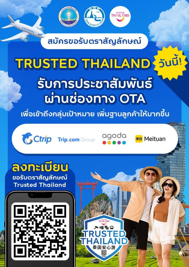 เพื่อยกระดับมาตรฐานความปลอดภัย สร้างความเชื่อมั่น และส่งเสริมภาพลักษณ์ที่ดีของประเทศไทยในสายตานักท่องเที่ยว จึงขอเชิญชวนผู้ประกอบการเข้าร่วมสมัครขอรับตราสัญลักษณ์ Trusted Thailand
