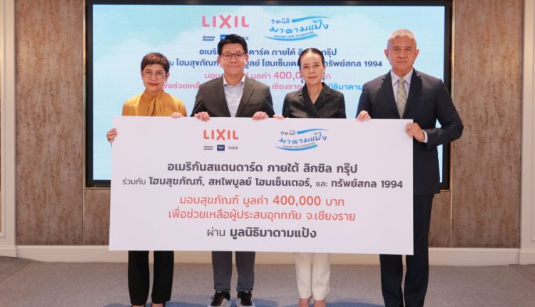 อเมริกันสแตนดาร์ด ภายใต้ ลิกซิล กรุ๊ป ร่วมกับ โฮมสุขภัณฑ์, สหไพบูลย์ โฮมเซ็นเตอร์, และ ทรัพย์สกล 1994 มอบสุขภัณฑ์ มูลค่า 400,000 บาท เพื่อช่วยเหลือผู้ประสบอุทกภัย จ.เชียงราย ผ่าน มูลนิธิมาดามแป้ง