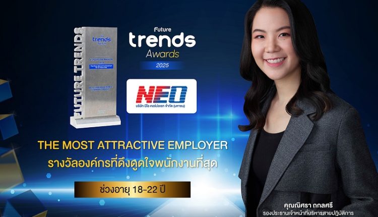 นีโอ คอร์ปอเรท ตอกย้ำความเป็นองค์กรในฝันของคนรุ่นใหม่ คว้ารางวัล “The Most Attractive Employer (18-22 Years Old)” จากเวที Future Trend Award 2025 ติดต่อกันเป็นปีที่ 2 โดยได้รับการโหวตจากกลุ่มผู้มีอายุระหว่าง 18-22 ปี ว่าเป็นบริษัทที่น่าร่วมงานด้วยมากที่สุด โดย ณิศรา ถกลศรี รองประธานเจ้าหน้าที่บริหารสายปฏิบัติการ บริษัท นีโอ คอร์ปอเรท จำกัด (มหาชน) หรือ NEO เผยว่า รางวัลนี้สะท้อนถึงวัฒนธรรมองค์กรที่ยืดหยุ่น ใส่ใจ และให้ความสำคัญกับความหลากหลาย เปิดโอกาสให้คนรุ่นใหม่ได้เติบโตและแสดงศักยภาพอย่างเต็มที่ พร้อมร่วมสร้างสรรค์นวัตกรรมและผลิตภัณฑ์ที่ช่วยยกระดับคุณภาพชีวิตของผู้บริโภคในทุกวัน